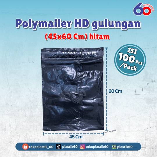 Polymailer HD gulungan 45x60 hitam (100 pcs)