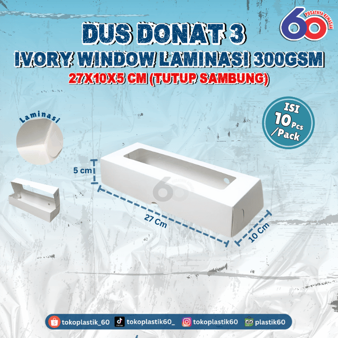 Dus donat 3 ivory window laminasi 300gsm 27x10x5 tutup sambung (10 pcs)