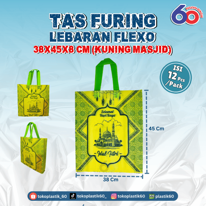 Tas furing lebaran flexo 38x45x8 kuning masjid (12pcs)